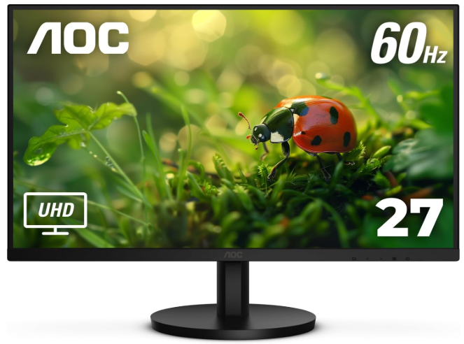 | Description: | AOC 4K 27" IPS 3840x2160 UHD Frameless Monitor W/ 1x Display Port, 2x HDMI & Built In Speaker | |||