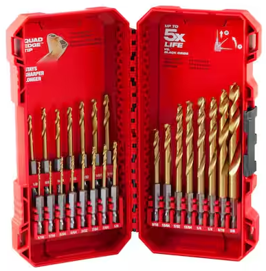 | Description: | Milwaukee SHOCKWAVE IMPACT DUTY Titanium Twist Drill Bit Set, 23-Piece | |||