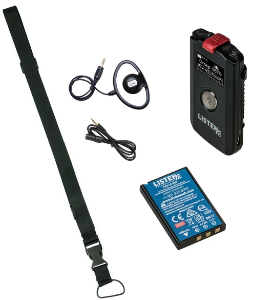 | Description: | Listen Technologies ListenTALK Transceiver W/ Lanyard, Ear Speaker & Battery | |||