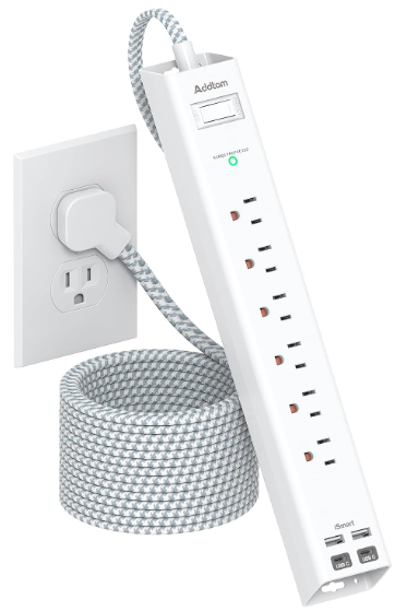 Description:Addtam Surge Protector Power Strip W/ 6x AC Outlets, 4x USB (2x USB-C) Ports, Flat Plug & 10ft Extension Cord, White