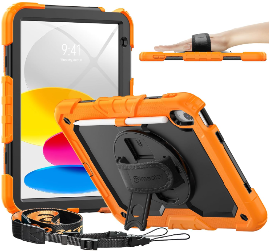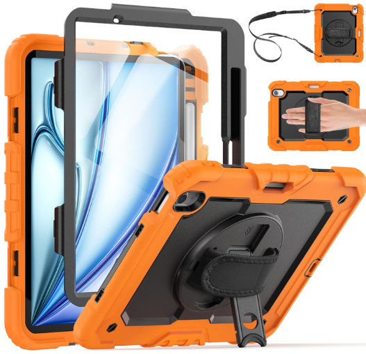 Description:Whmeolyo Shockproof Case W/ Screen Protector, Pencil Holder, Kickstand & Hand / Array Shoulder Strap For IPad Air M3/M2 (2025/2024) & IPad Air 7th/6th Generation, Orange