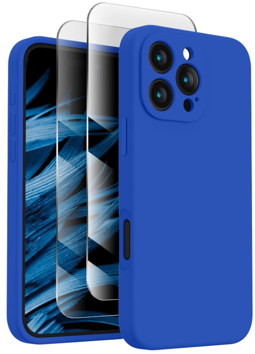 Description:FireNova Anti-Scratch, Silicone Upgraded Case For IPhone 16 Pro Max W/ 2x Screen Protectors, Klein Blue