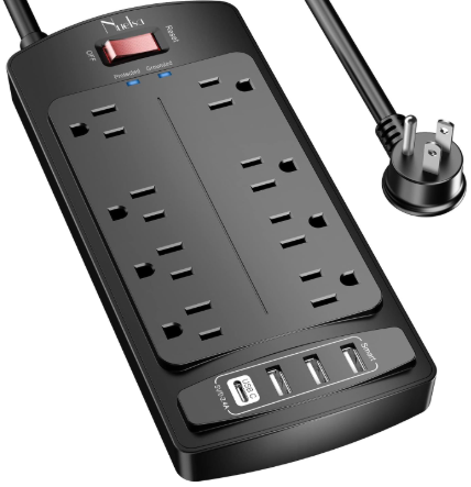 | Description: | Nuetsa Surge Protector (1625W/13A), 2700 Joules, ETL Listed, Power Strip W/ 8x Outlets, 4x USB Ports, Flat Plug & 6ft Extension Cord, Black | |||