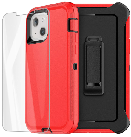 Description:AlCase Heavy Duty Rugged Shockproof Case For IPhone 13 & 14 W/ Belt-Clip Holster & Screen Protector, Red