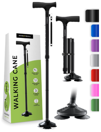 | Description: | HoneyBull Foldable, Adjustable, Heavy-Duty Walking Cane, Black | |||