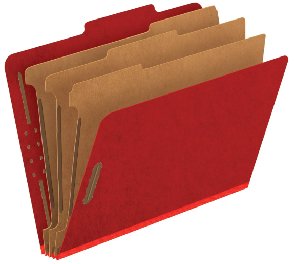 Description:Pendaflex Pressboard Classification File Folders W/ 3x Dividers, 2" Embedded Fasteners & 2/5 Tab Cut, Bright Red, 10-Pack