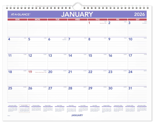 Description:AT-A-GLANCE 2026 Wall Calendar, 15" X 12", Medium, Wide