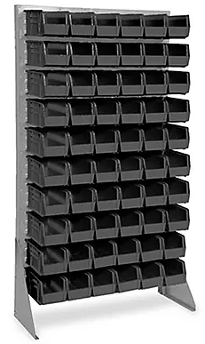 Description:Uline Single Sided Floor Rack Bin Organizer W/ 11 X 5 1⁄2 X 5" Black Bins