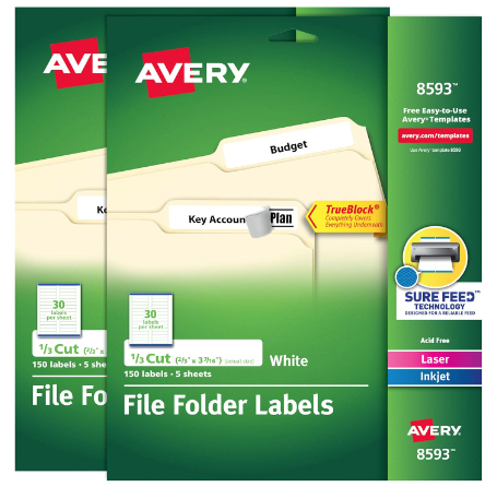 Description: Avery File Folder Labels With TrueBlock Technology, Permanent Adhesive, 2/3" X 3-7/16", Laser/Inkjet, 2-Pack, 300 Labels Total
