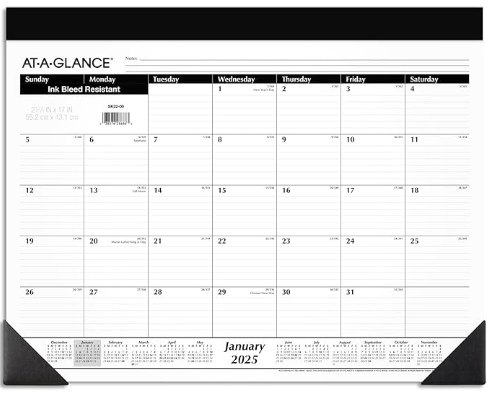 Description:AT-A-GLANCE 2025 Desk Calendar, Monthly, Desk Pad, 21-3/4" X 17", Standard