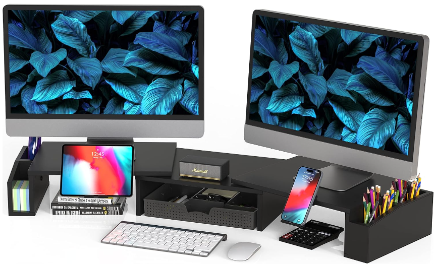 Description:Simple Houseware Desk Dual Monitor Stand Riser W/ Drawer, Black