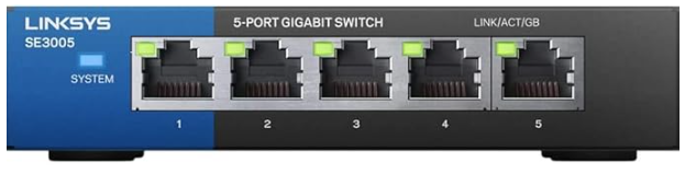 Description:Linksys 5-Port Gigabit Ethernet Unmanaged Switch, Black / Blue