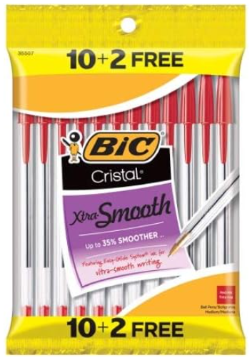 Description:Bix Cristal Xtra-Smooth Medium Ballpoint Pen, Red, 12-Count