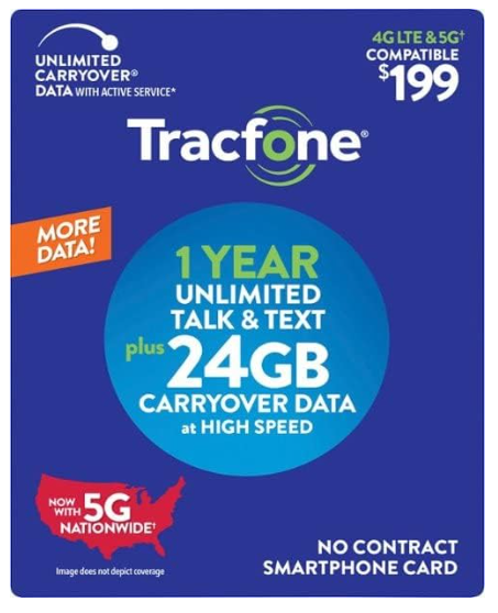 Description:TracFone $199 Smartphone Unlimited Talk & Text 1-Year Prepaid Plan