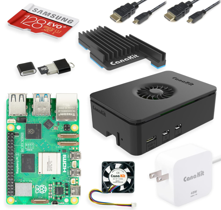 | Description: | CanaKit Raspberry Pi 5 Starter Kit Pro W/ 8GB Ram, 128GB, Turbine Black | |||