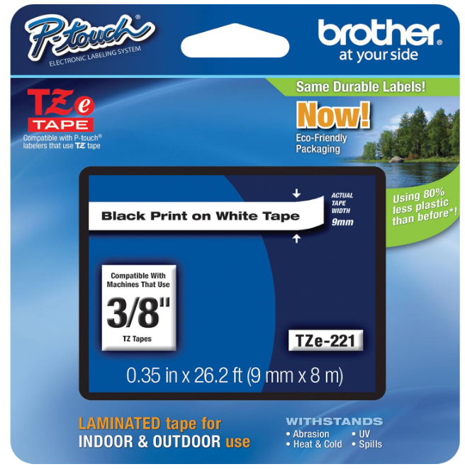 Description:Brother 3/8" P-Touch Tape, Black On White