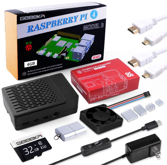 | Description: | GeeekPi Raspberry Pi 4 4GB Starter Kit W/ 64GB MicroSD Card, Case W/ PWM Fan, 5V, 3.6A, 18W Power Supply W/ On / Off Switch & HDMI Cable | |||