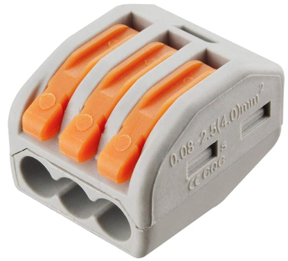 | Description: | Wago 3 Conductor Lever Connector Nuts, 28-12 AWG, 100pc Bag | |||