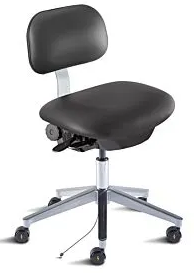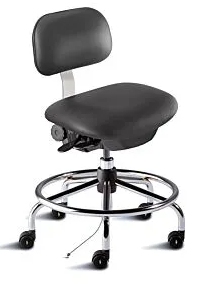 Description:Terra Universal Chair; ISO 5, ESD Vinyl, Black, Chrome-plated Metal, 17" - 22", Ergonomic Backrest, Waterfall Seat, W/O Footring, Elite, Biofit
