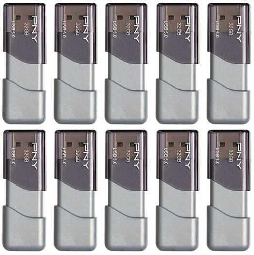 | Description: | PNY 32GB Turbo Attaché 3 USB 3.0 Flash Drive, Gray, 10-Pack | |||