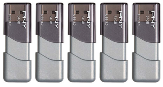 | Description: | PNY 64GB Turbo Attaché 3 USB 3.0 Flash Drive, Fray, 5-PAck | |||