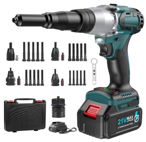 | Description: | WonVon 2-In-1 Cordless, Portable, Battery Powered Rivet Nut Gun Set w/ 4pc Adpaters, 10-24 & 1/4 & 5/16 & 3/8 | |||