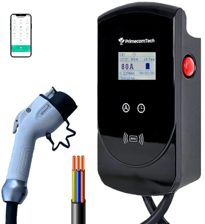 Description:Primecom 80 Amp Level 2 EV Charger, 277 / 480 Volt AC 2/3 Phase For Chevy Bolt 2024, 25ft