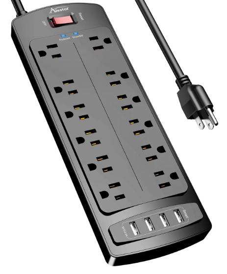 | Description: | Alestor Surge Protector Power Strip W/ 12x Outlets & 4x USB Ports W/ 6ft Extension Cord, Black | |||
